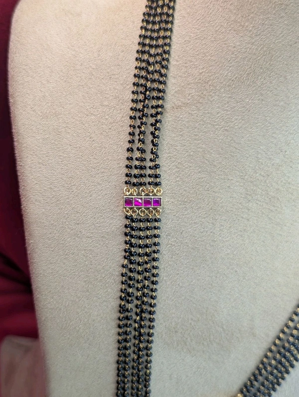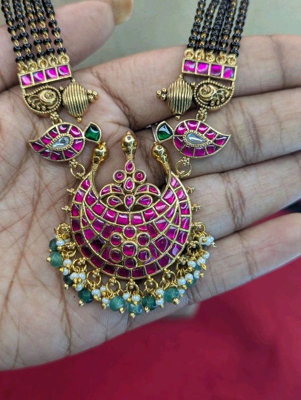 gold look black beads with jadua kundan (6674)