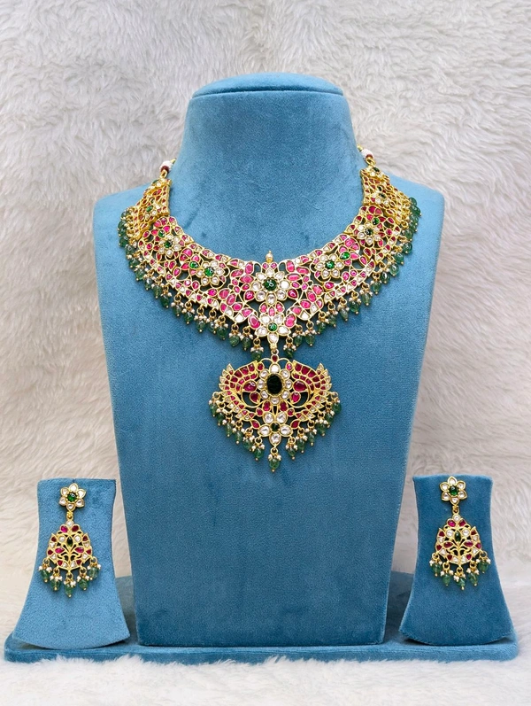 Premium Grand Jadua Kundan Neck Set With Ear Rings