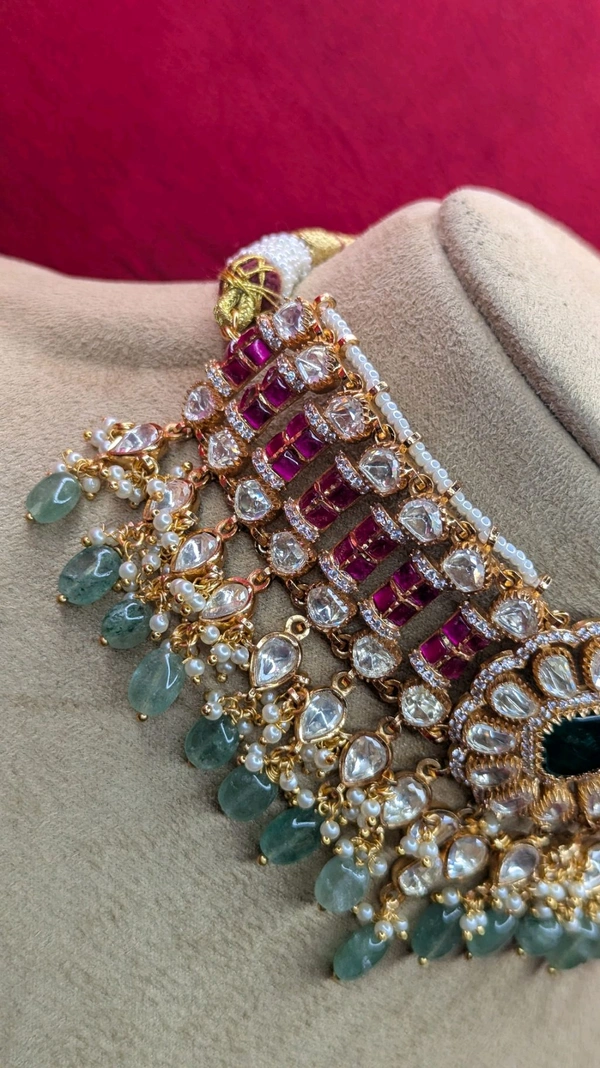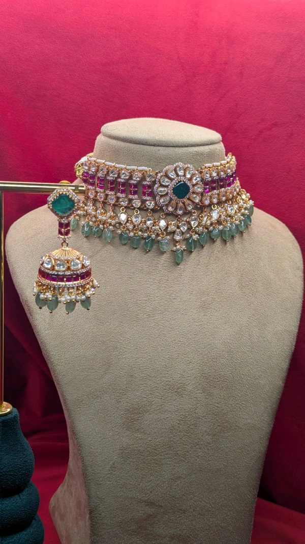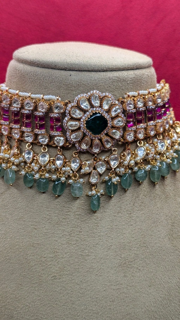 premium mossonite with jadus kundan real gold copy chockes (6336)