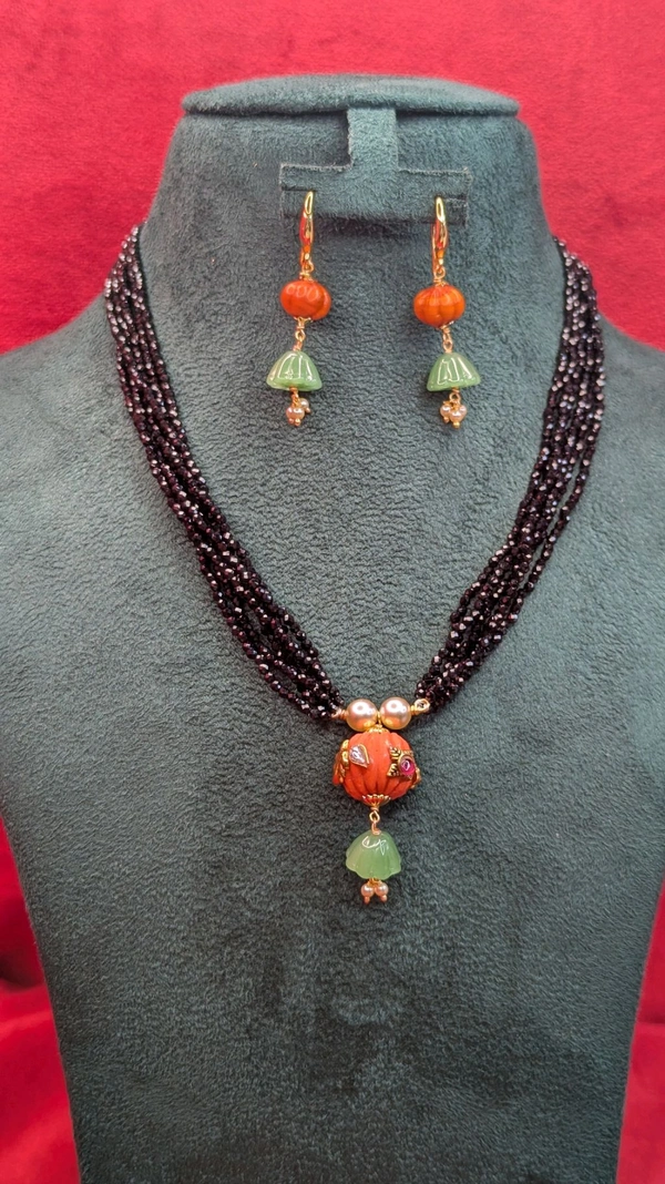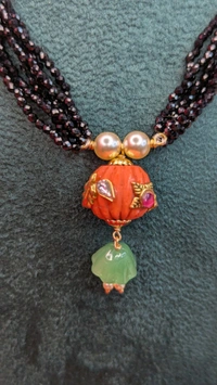 REAL CORAL WITH CARVING WITH BLACK SPINNALS (7107)
