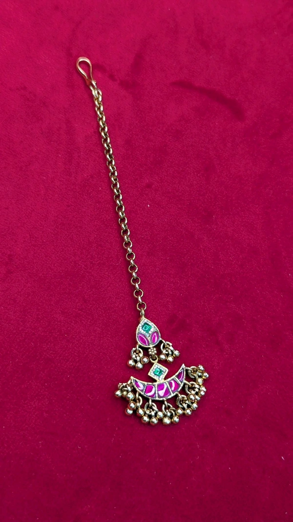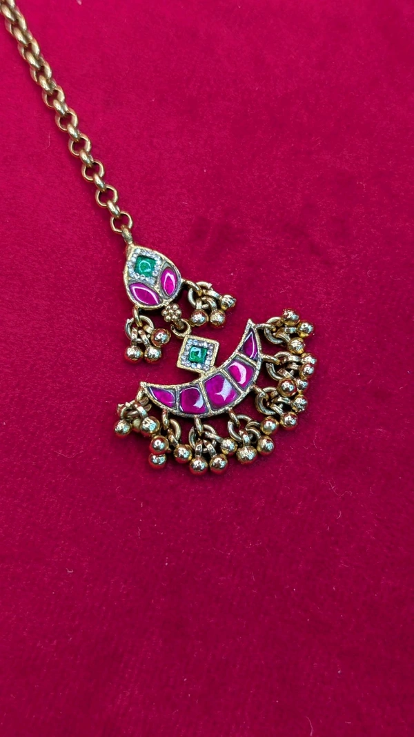 real gold look jadua kundan maang tika (7055)