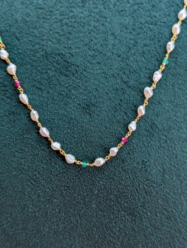real rice pearls with emerals and ruby 1 line