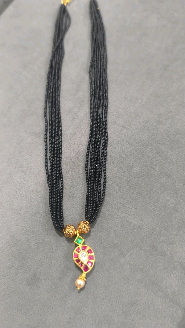 Soft Black Beads With Jadau Kundan Pendant